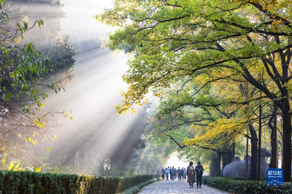 10月22日,游人在江蘇省南京明孝陵景區賞葉游玩。