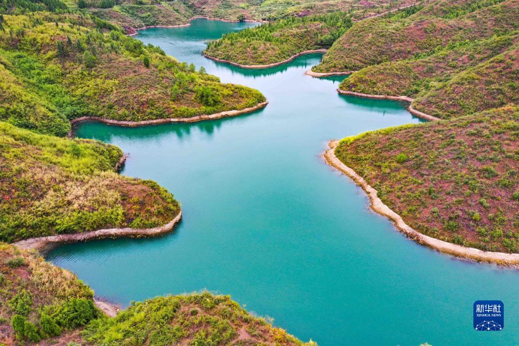 這是10月10日在貴州省銅仁市玉屏侗族自治縣白巖河水庫拍攝的秋景(無人機照片)。