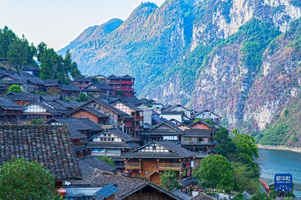 這是10月4日在重慶市酉陽土家族苗族自治縣拍攝的位于烏江江畔的龔灘古鎮(zhèn)秋景。