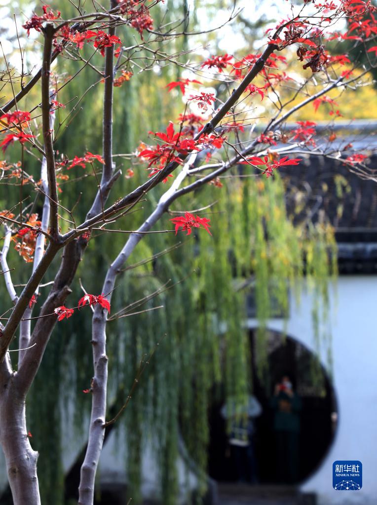10月20日,游人在江蘇省蘇州市可園拍攝秋景。