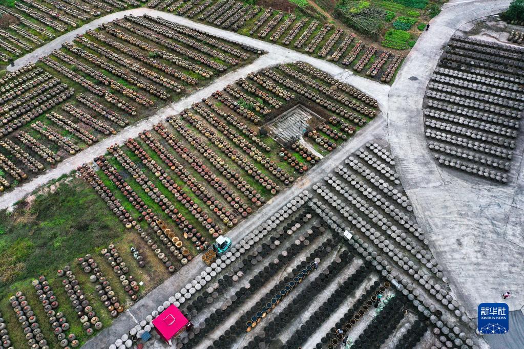 這是10月28日拍攝的貴州省赤水市黔老翁醋廠晾曬區(無人機照片)。