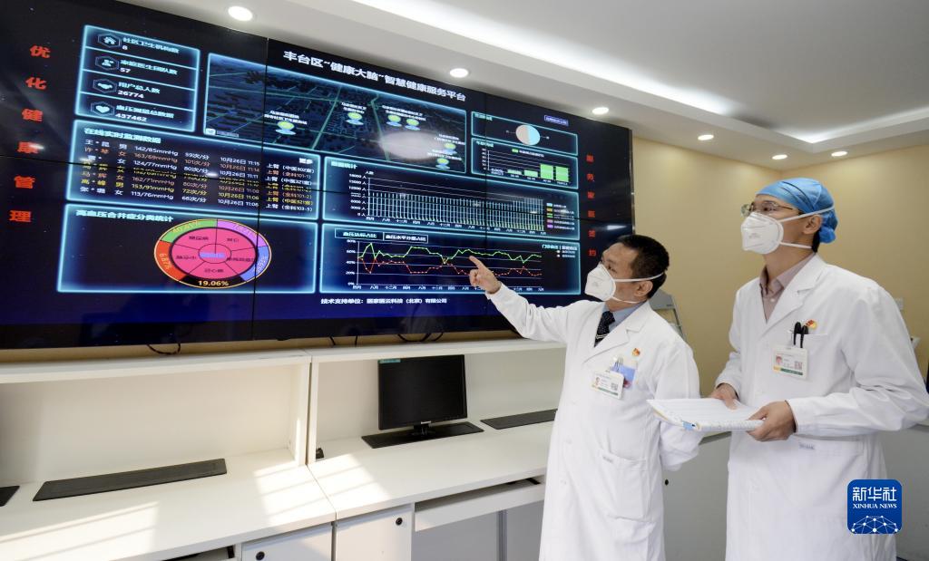 北京市豐臺區(qū)馬家堡社區(qū)衛(wèi)生服務中心的醫(yī)生在應用“健康大腦”智能監(jiān)測系統(tǒng)了解居民健康狀況(10月26日攝)。