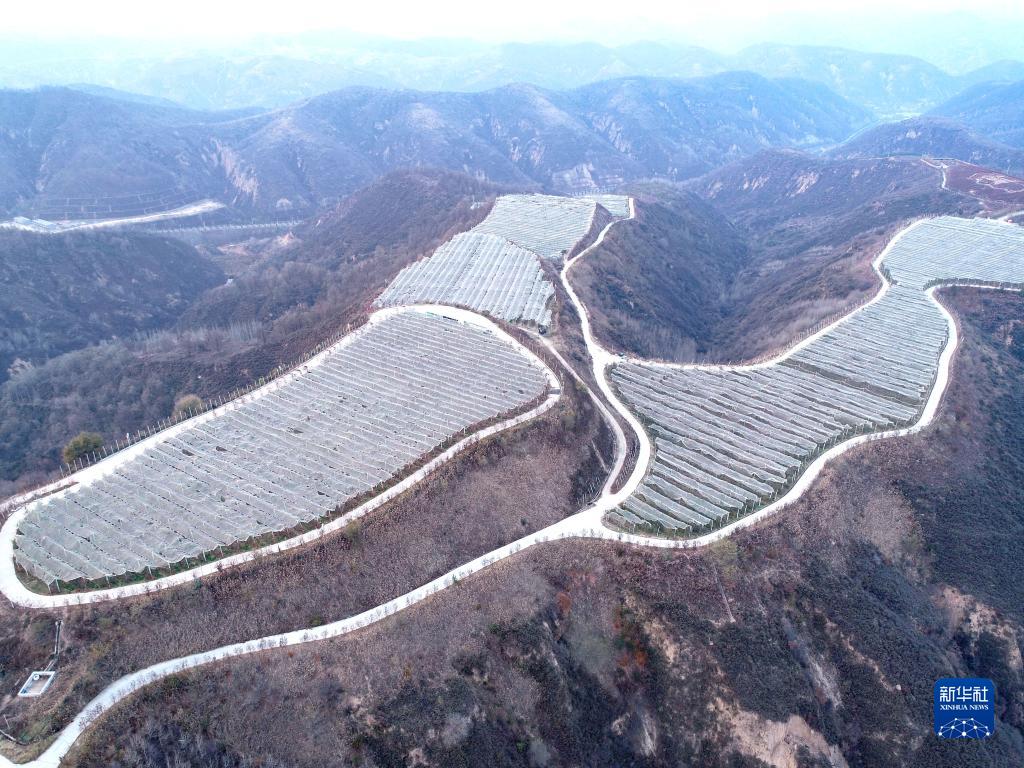 這是10月26日拍攝的陜西省延安市安塞區南溝村蘋果園(無人機照片)。 新華社記者 張博文 攝