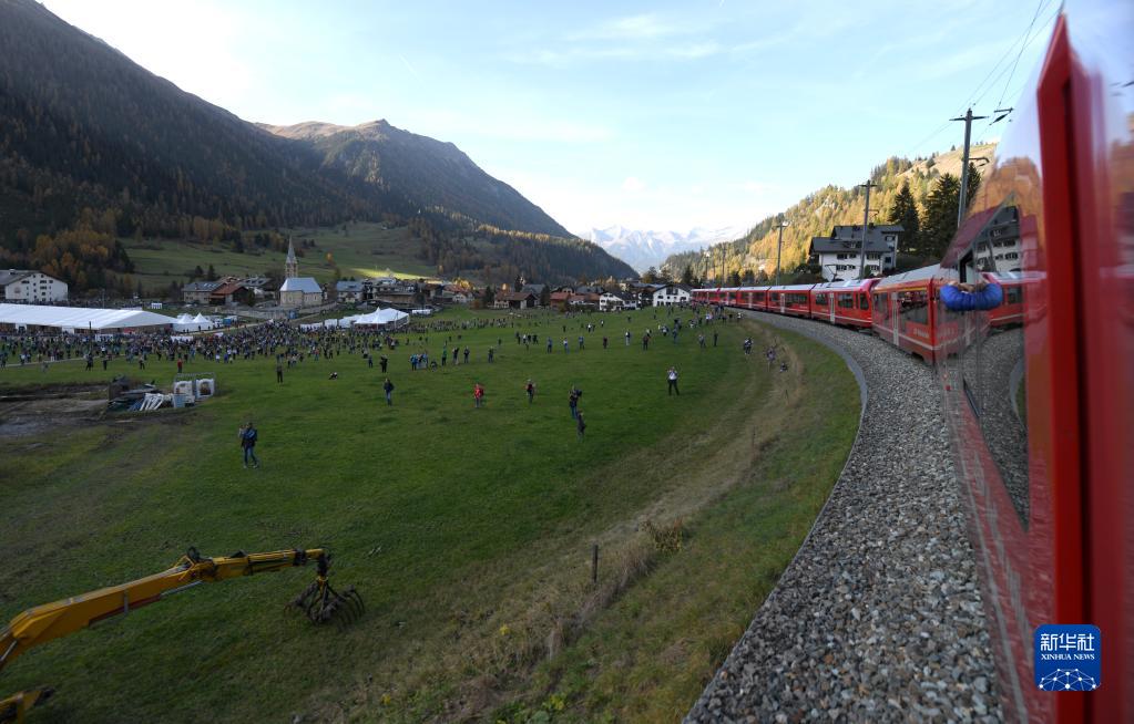 10月29日,世界最長窄軌客運列車在位于瑞士阿爾卑斯山區的雷蒂亞鐵路網上行駛。