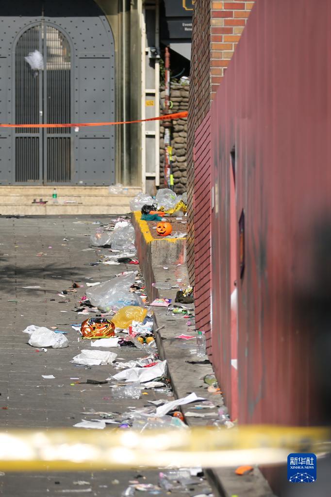 這是10月30日在韓國首爾拍攝的踩踏事故現(xiàn)場(chǎng)。