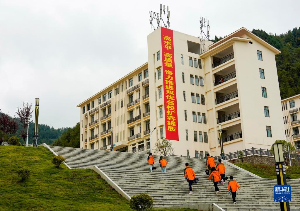 10月27日,重慶市黔江區(qū)民族職業(yè)教育中心的學生前往實訓課所在的教室上課。