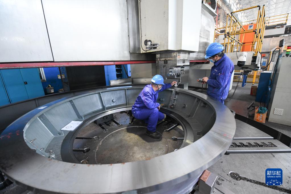 10月30日,在哈電集團哈爾濱電機廠有限責任公司的生產車間,工人在進行生產作業。