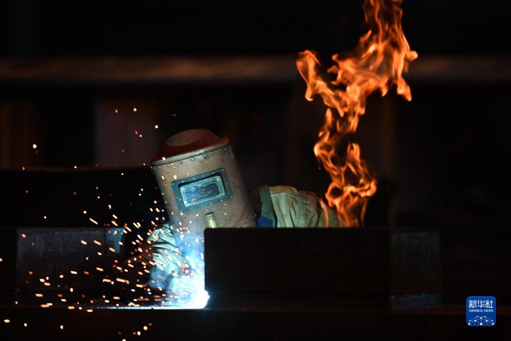 10月30日,在哈電集團哈爾濱電機廠有限責任公司的生產車間,工人在進行生產作業。