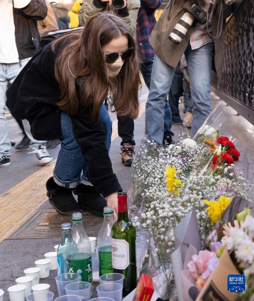 10月30日,民眾在韓國首爾市龍山區(qū)梨泰院洞一帶悼念踩踏事故遇難者。