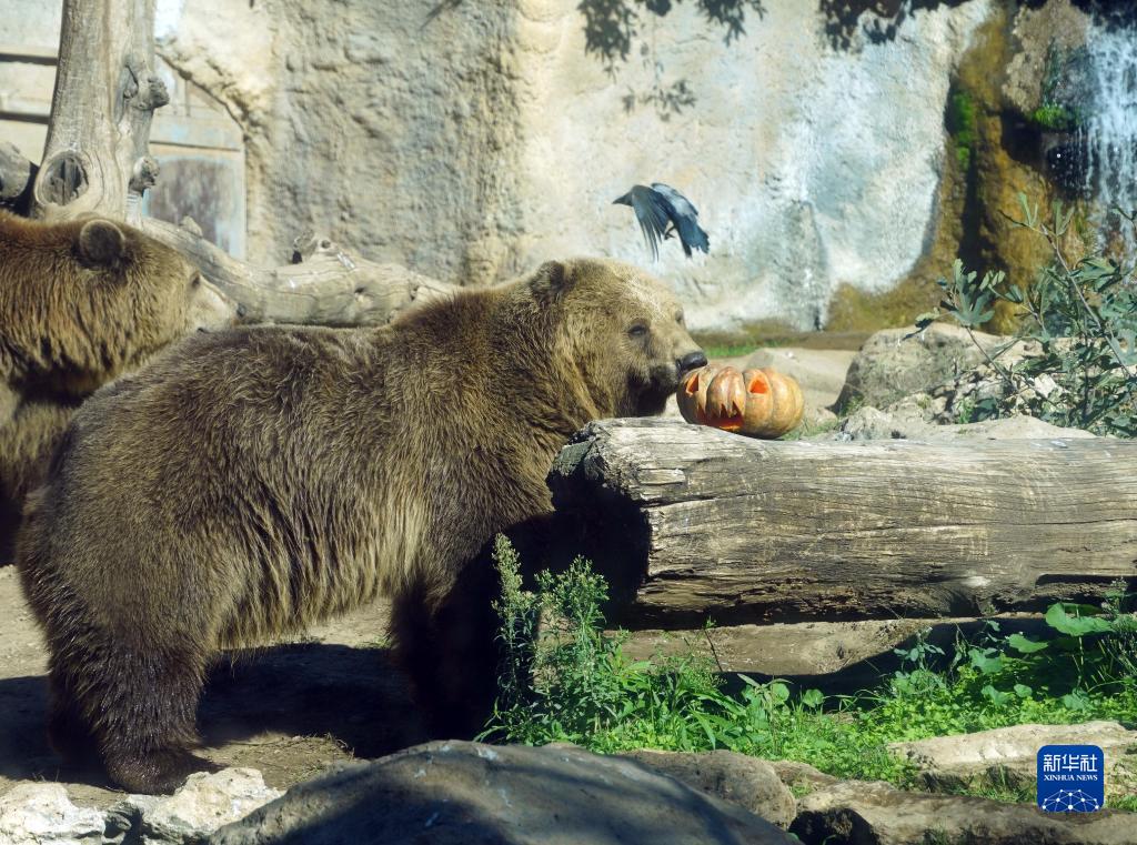 10月30日,在意大利羅馬動物園,棕熊享用節(jié)日南瓜。
