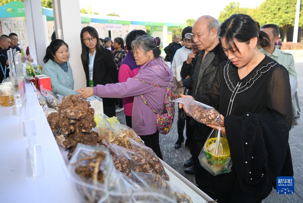 10月31日,參觀者在博覽會上了解、選購中藥材。