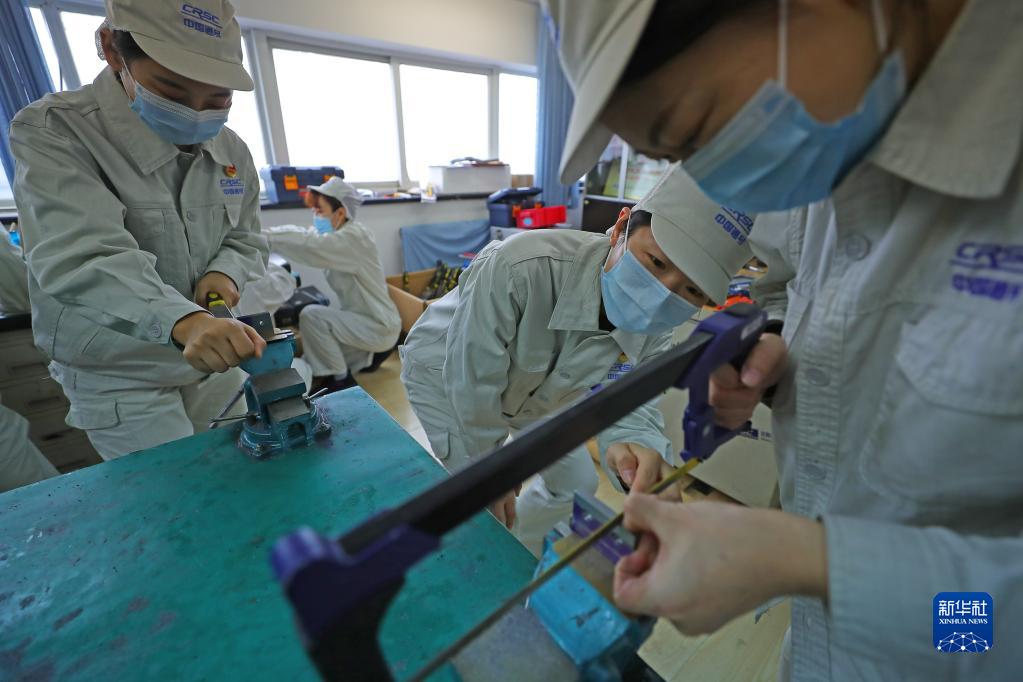 10月31日,柯曉賓(中)在沈陽鐵路信號有限責任公司柯曉賓勞模工作室練功房指導員工進行信號鉗工訓練。