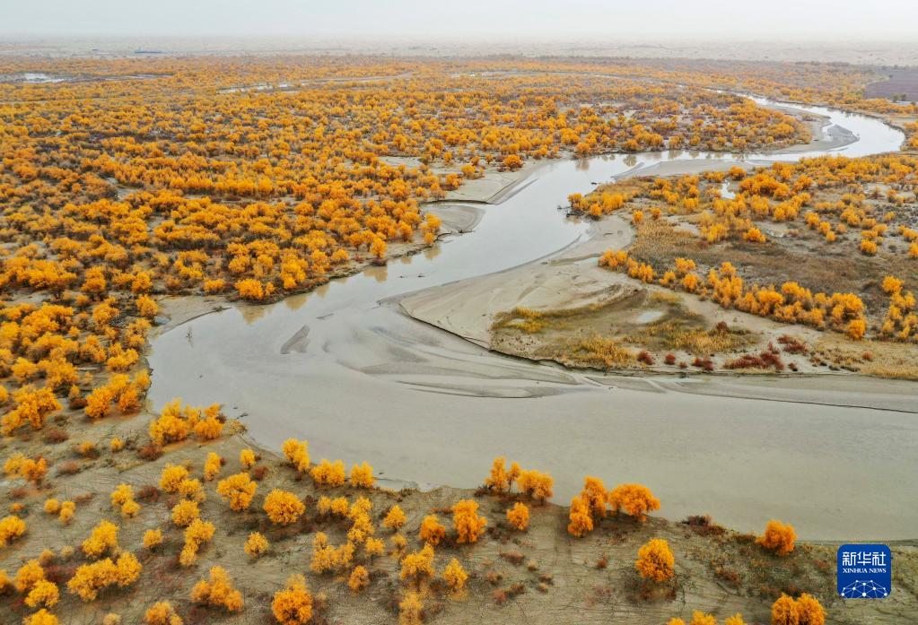 深秋時節,新疆塔里木河流域胡楊林披上“金裝”,與碧水、大漠相互映襯,構成一幅秀美的生態畫卷。新疆沿塔里木河流域分布著約1500萬畝胡楊林,是世界面積最大的胡楊林區。