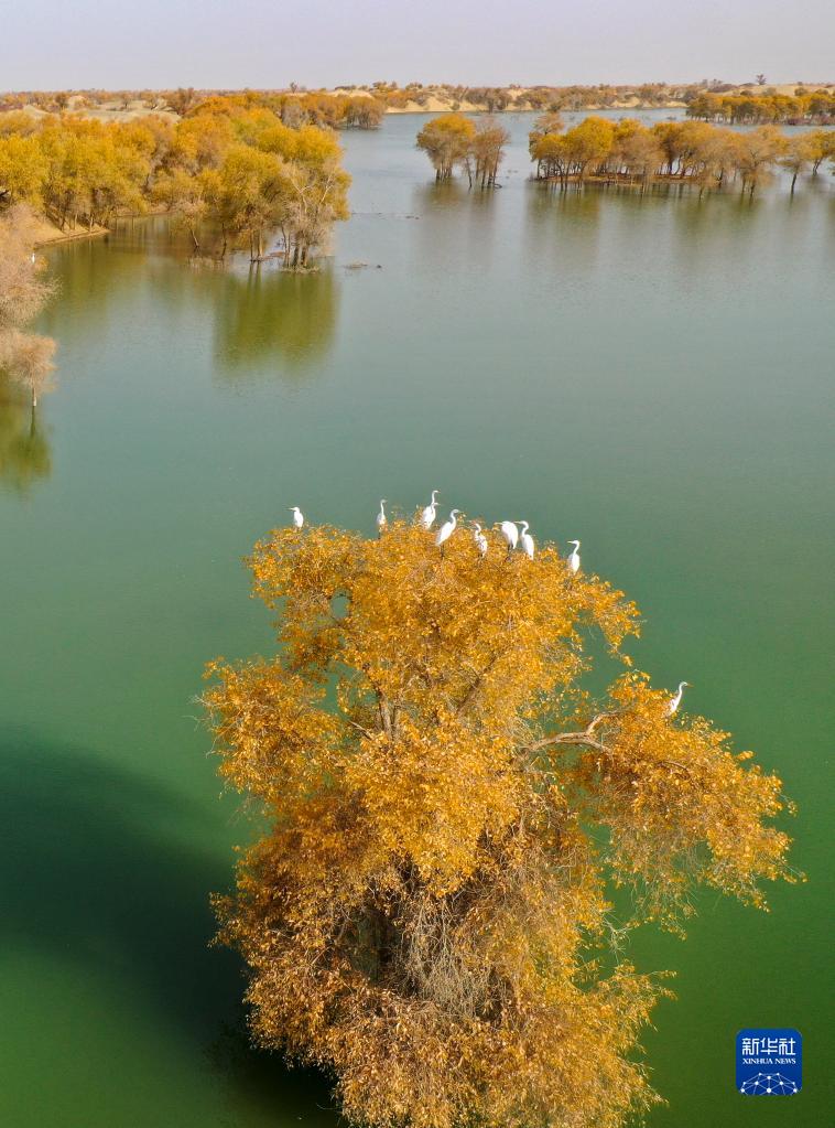 深秋時節,新疆塔里木河流域胡楊林披上“金裝”,與碧水、大漠相互映襯,構成一幅秀美的生態畫卷。新疆沿塔里木河流域分布著約1500萬畝胡楊林,是世界面積最大的胡楊林區。