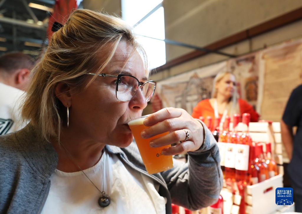 10月31日,一名女子在法國(guó)巴黎巧克力沙龍上品嘗巧克力啤酒。
