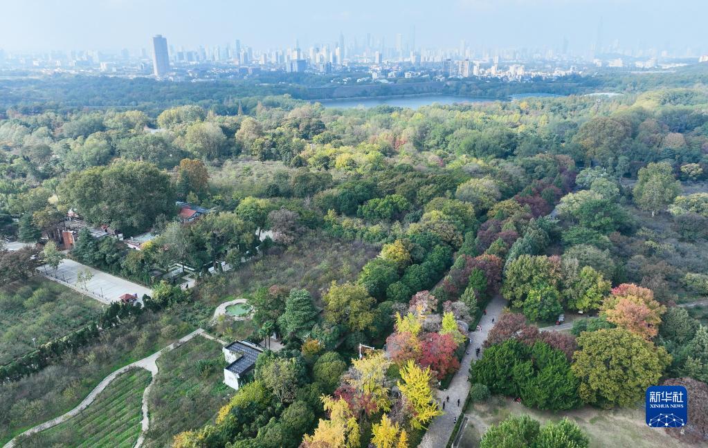 11月1日拍攝的南京鐘山風景名勝區秋色(無人機照片)。