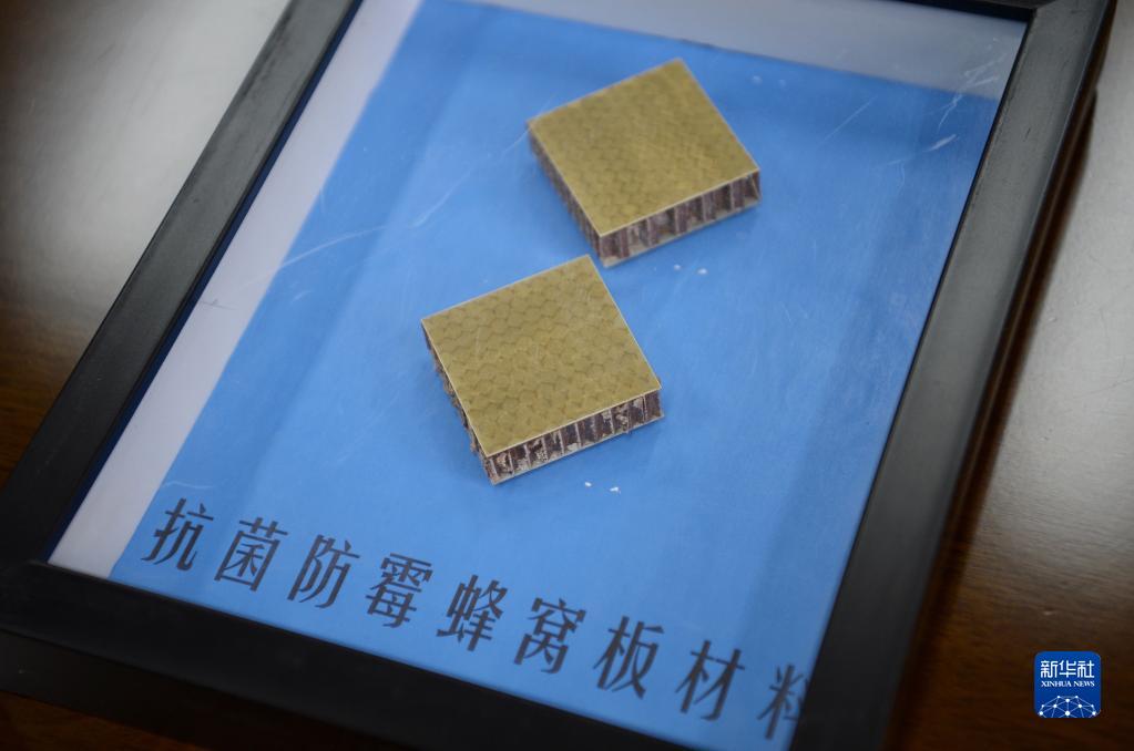 這是中國航天科技集團有限公司第七研究院第七設計部宇航團隊研發的抗菌防霉蜂窩板材料(10月19日攝)。