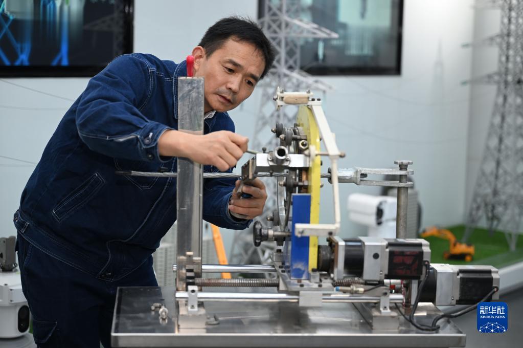 11月2日,廖志斌在國網安徽省電力有限公司宿州供電公司研發輸電線路運檢工具。
