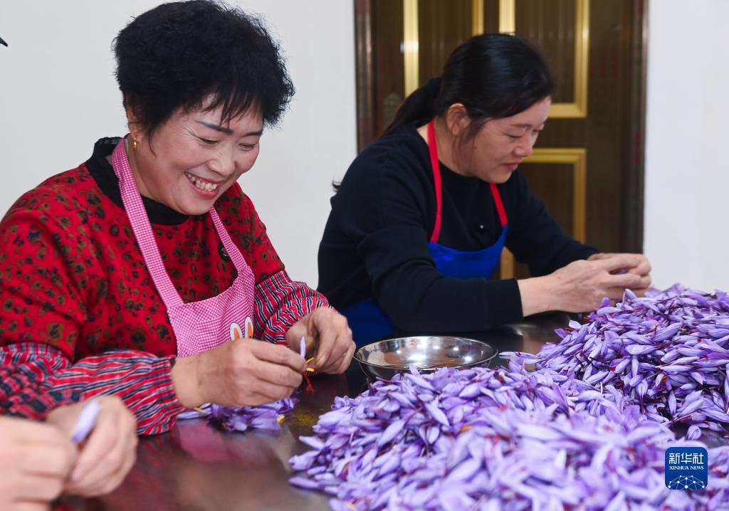 從11月初開始,浙江省建德市三都鎮圣江村迎來西紅花豐收的時節。三都鎮目前西紅花種植面積2000多畝,種植戶數近500余戶,花絲平均年產量約2900公斤,成為助力當地農戶致富增收和共同富裕的重要產業。