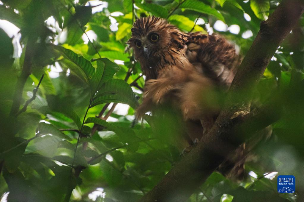 在新加坡雙溪布洛濕地保護區(qū)拍攝的馬來漁鸮(1月4日攝)。