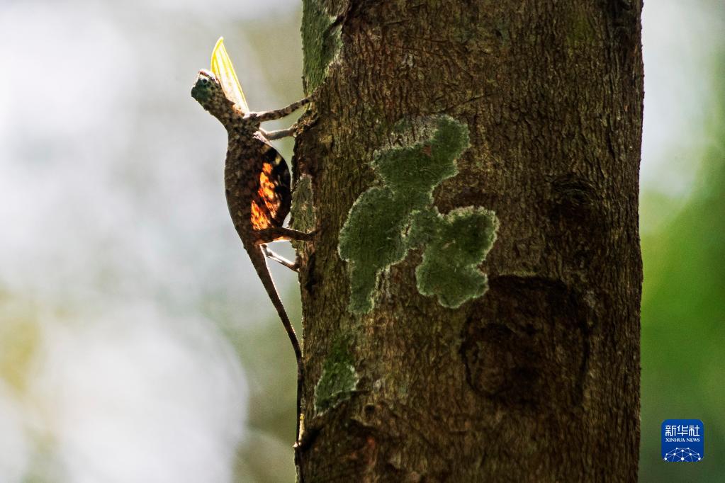 在新加坡雙溪布洛濕地保護(hù)區(qū)拍攝的飛蜥(5月30日攝)。