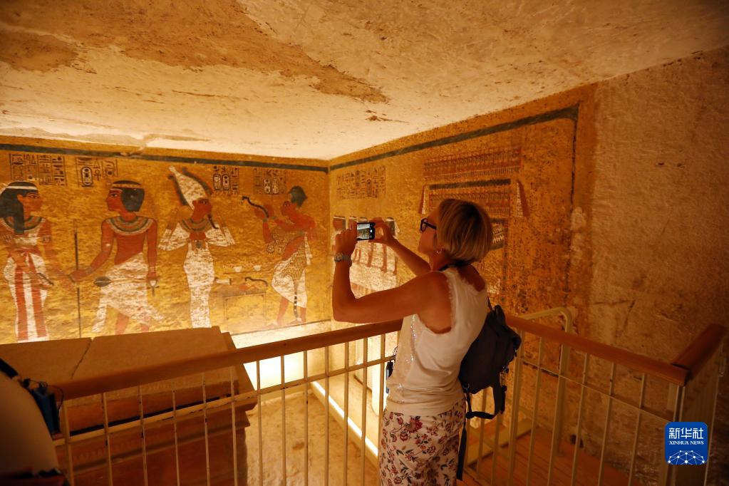 11月4日,游客在位于埃及盧克索帝王谷的圖坦卡蒙墓內拍照。