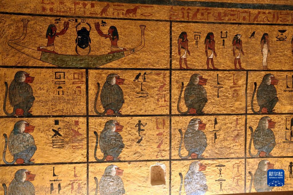 這是11月4日在位于埃及盧克索帝王谷的圖坦卡蒙墓內(nèi)拍攝的壁畫。