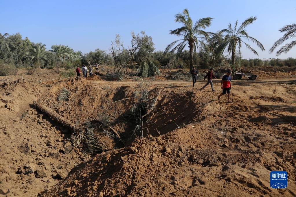 11月4日,人們查看位于加沙地帶中部的遭以軍空襲破壞的區域。