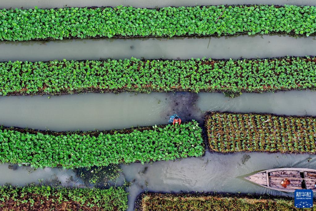 10月25日,在孟加拉國博里薩爾,農民照料水上農田。