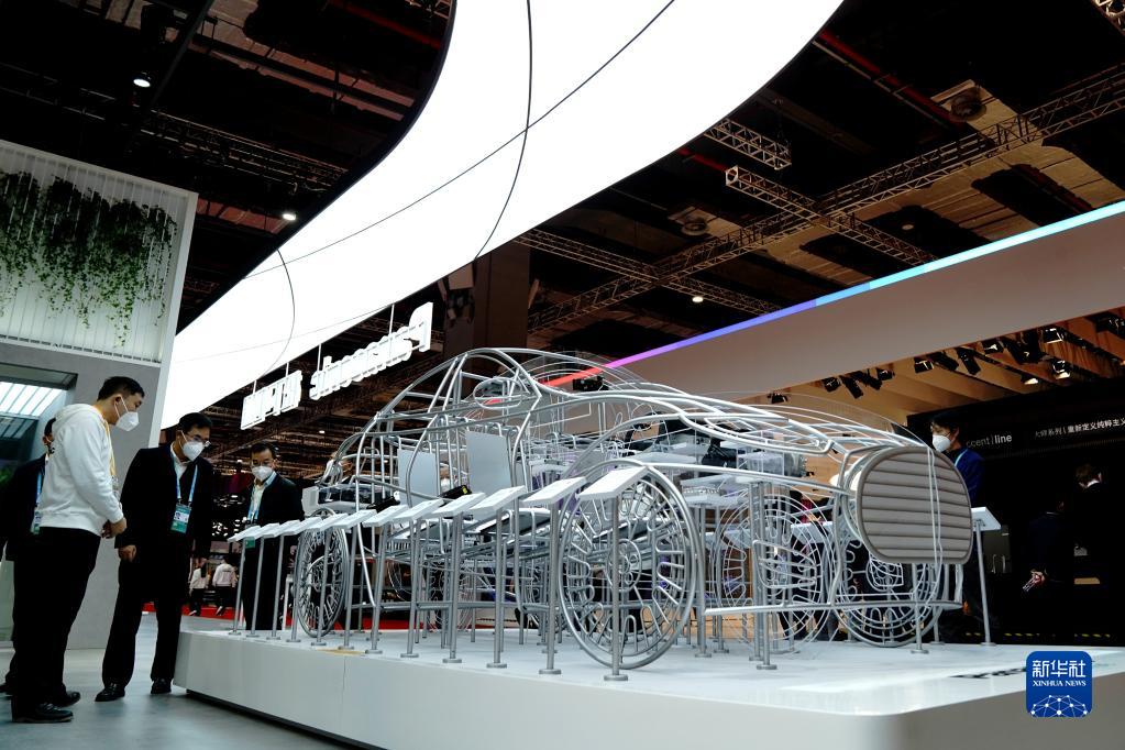 11月5日,參觀者在第五屆進(jìn)博會(huì)消費(fèi)品展區(qū)參觀新能源汽車搭載的電子產(chǎn)品。