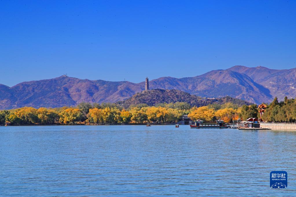 這是11月4日在北京頤和園昆明湖拍攝的秋景。 新華社發(fā)(劉憲國 攝)