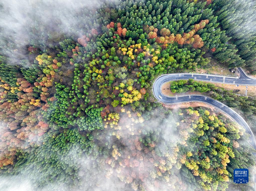 這是10月31日在湖北省恩施土家族苗族自治州建始縣業(yè)州鎮(zhèn)拍攝的秋景(無人機照片)。 新華社發(fā)(張遠明 攝)