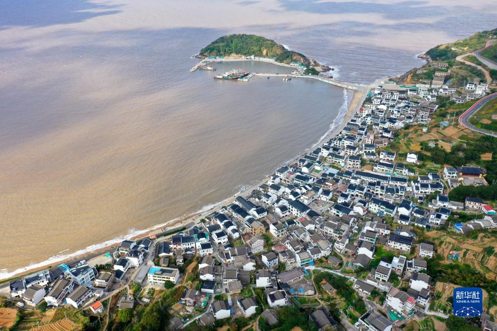 這是11月1日在浙江省舟山市岱山縣衢山鎮涼峙村拍攝的秋景(無人機照片)。 新華社發(鄒訓永 攝)