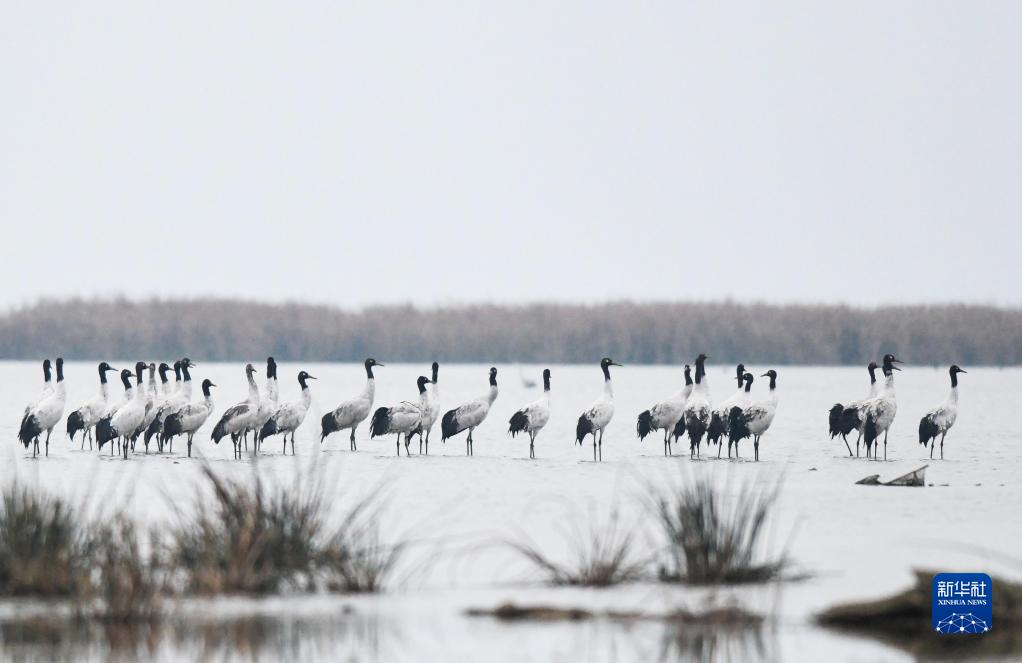 貴州草海濕地迎來今年首批越冬黑頸鶴