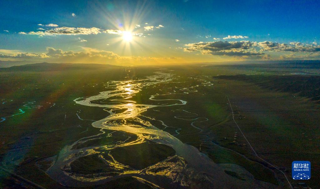 這是青海湖布哈河濕地一景(2020年7月18日攝,無人機照片)。