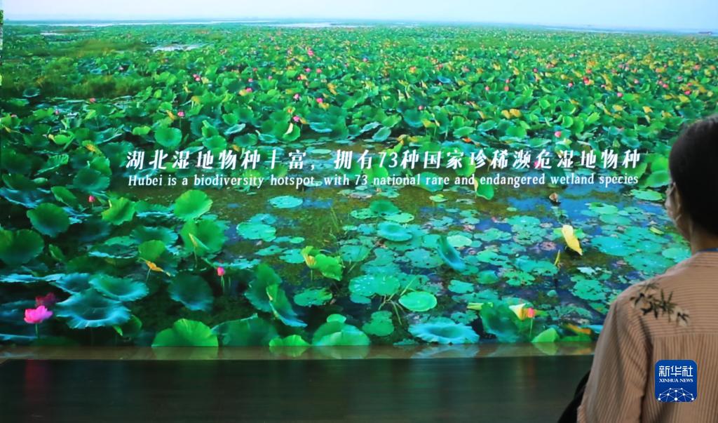 11月5日,參觀者在武漢東湖國際會議中心觀看介紹湖北濕地的視頻。
