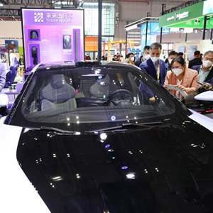 11月5日,參觀者在第五屆進(jìn)博會(huì)技術(shù)裝備展區(qū)的電動(dòng)車前交流。