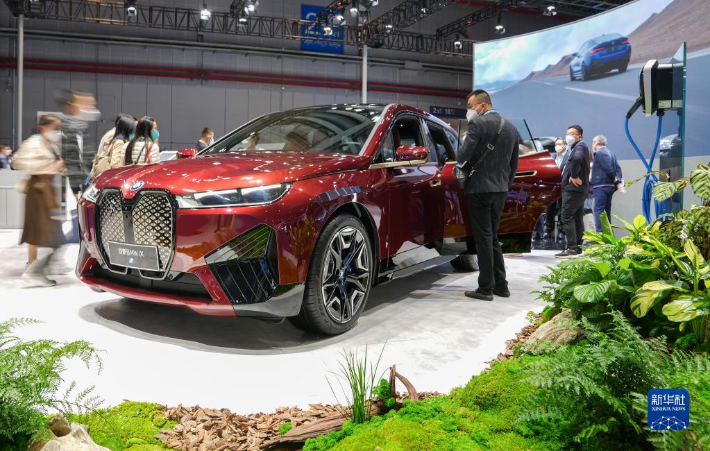 11月6日在第五屆進博會汽車展區拍攝的寶馬新能源汽車。