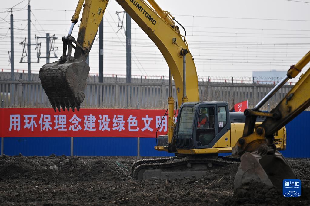11月6日,在天津市濱海新區濱海西站,工程車輛在施工作業。