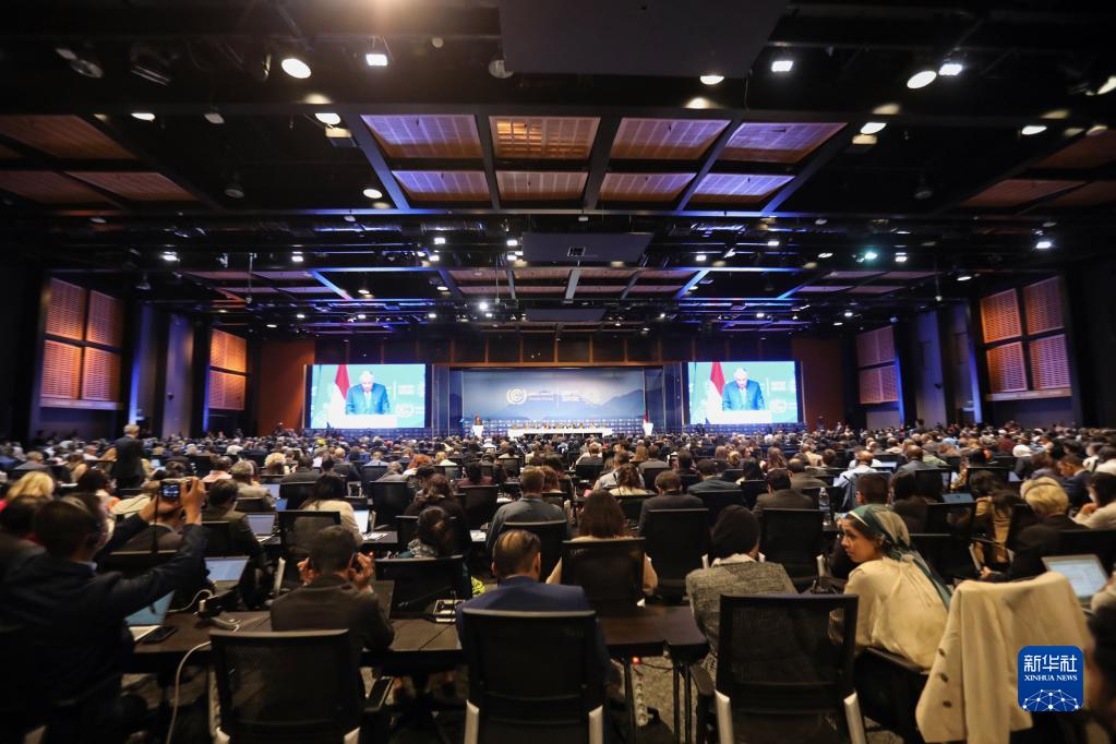 這是11月6日在埃及沙姆沙伊赫拍攝的《聯合國氣候變化框架公約》第二十七次締約方大會(COP27)開幕現場。