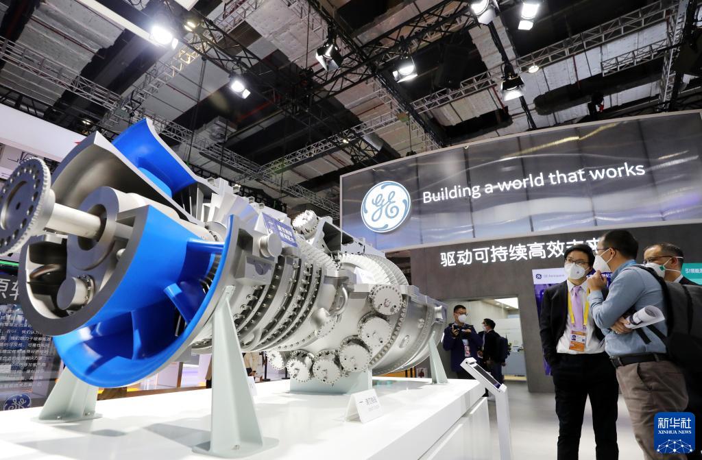 11月6日拍攝的第五屆進(jìn)博會上的美國通用電氣公司展臺。