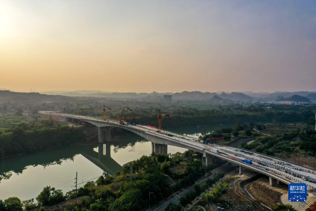 當日,隨著最后一模混凝土澆筑完成,由中鐵五局承建的廣西崇左麗江大橋合龍。麗江大橋全長521米,主橋最大跨度160米。大橋建成通車后,在改善當地居民出行條件的同時,對廣西自貿區崇左片區的經濟發展將發揮重要作用。
