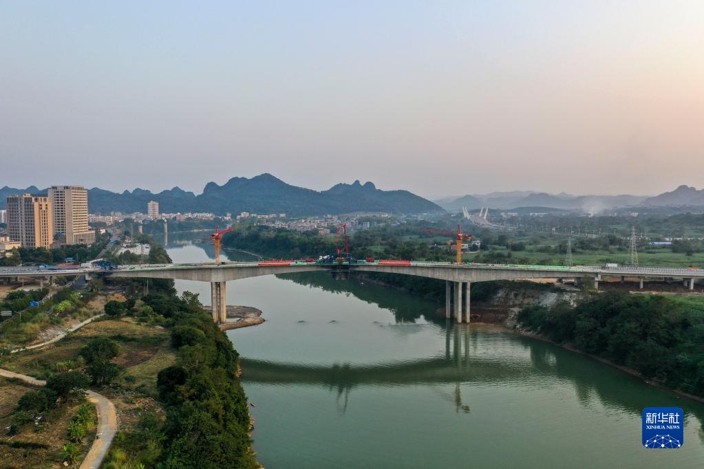 當(dāng)日,隨著最后一模混凝土澆筑完成,由中鐵五局承建的廣西崇左麗江大橋合龍。麗江大橋全長(zhǎng)521米,主橋最大跨度160米。大橋建成通車后,在改善當(dāng)?shù)鼐用癯鲂袟l件的同時(shí),對(duì)廣西自貿(mào)區(qū)崇左片區(qū)的經(jīng)濟(jì)發(fā)展將發(fā)揮重要作用。
