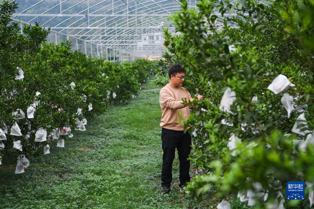 10月26日,在重慶市大足區中敖鎮加福村,劉峰鉆在柑橘園查看柑橘生長情況。