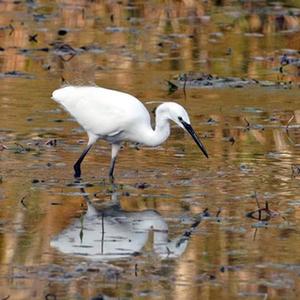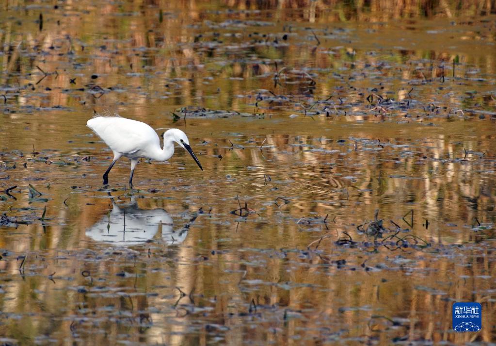 在意大利納扎諾泰韋雷-法爾法自然保護區,一只白鷺在水中覓食(11月3日攝)。