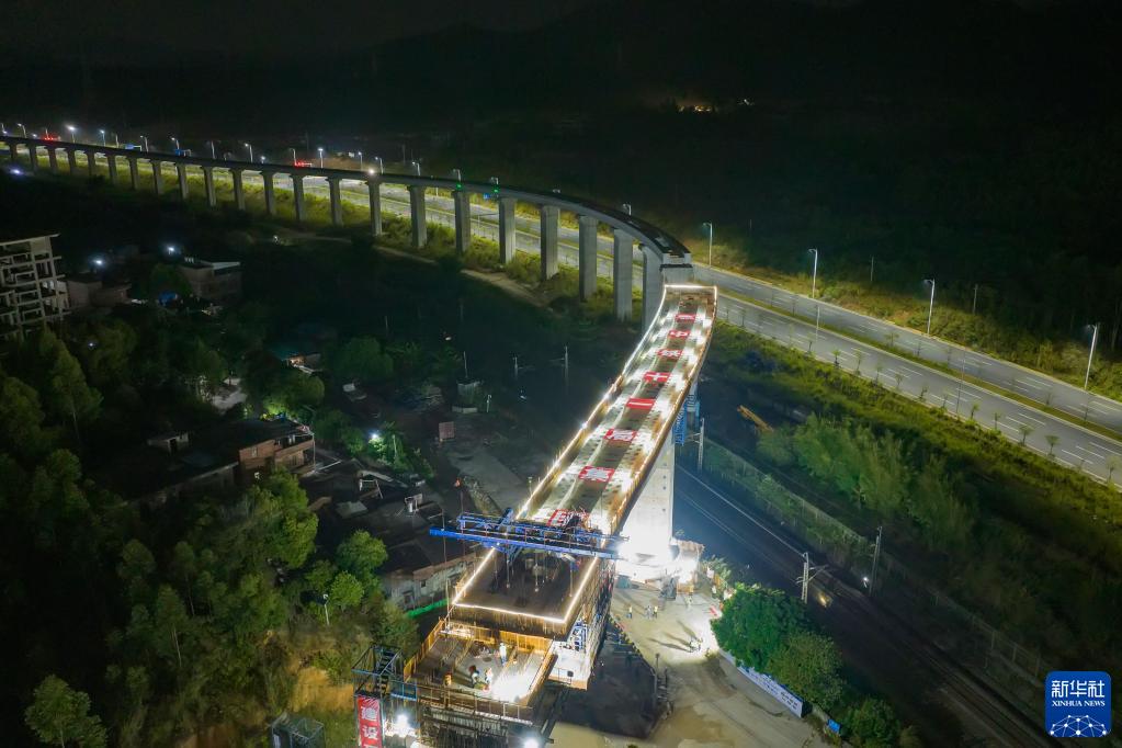 11月8日,清遠磁浮旅游專線長隆特大橋跨京廣鐵路連續(xù)梁在轉體過程中(無人機照片)。