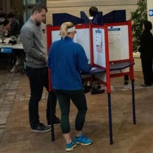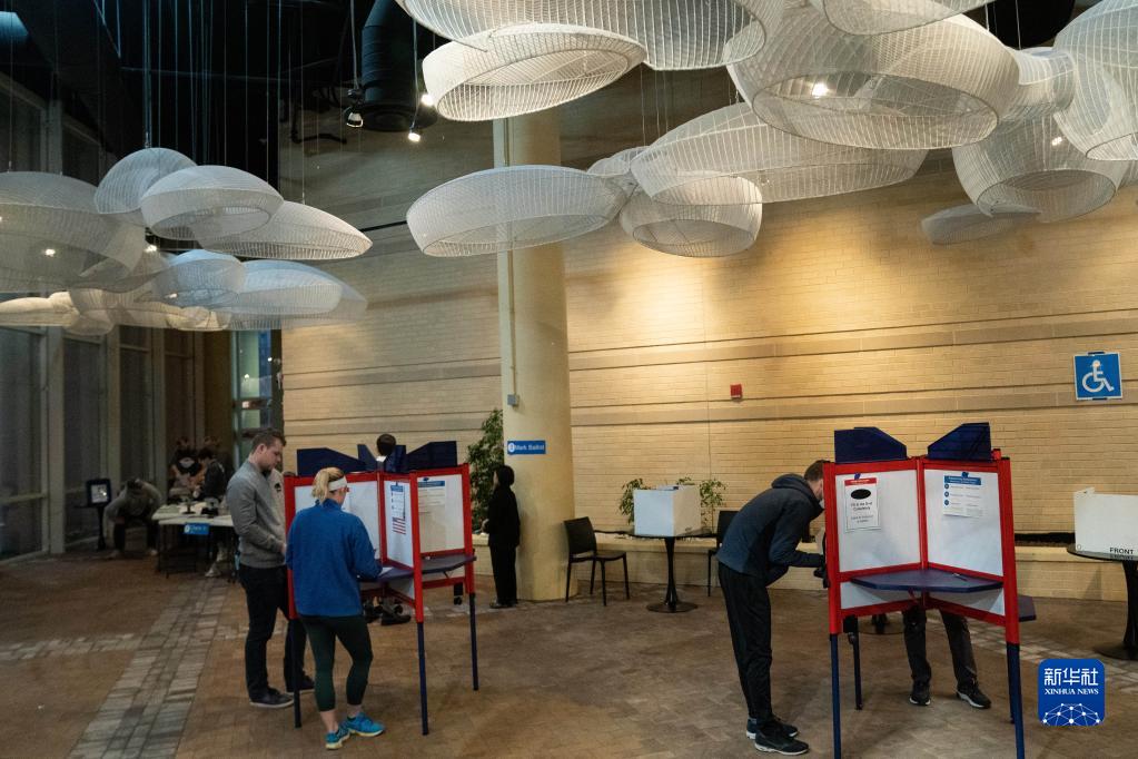 11月8日,選民在美國弗吉尼亞州阿靈頓的一處投票點參加中期選舉投票。