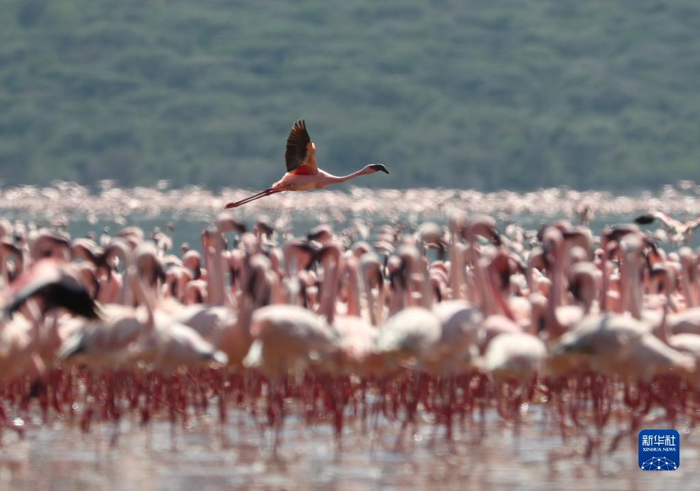 這是11月6日在肯尼亞博戈里亞湖拍攝的火烈鳥。