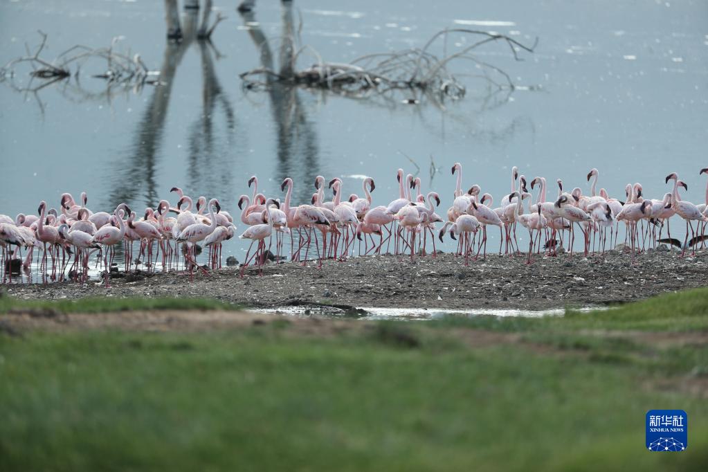 這是11月6日在肯尼亞博戈里亞湖拍攝的火烈鳥。