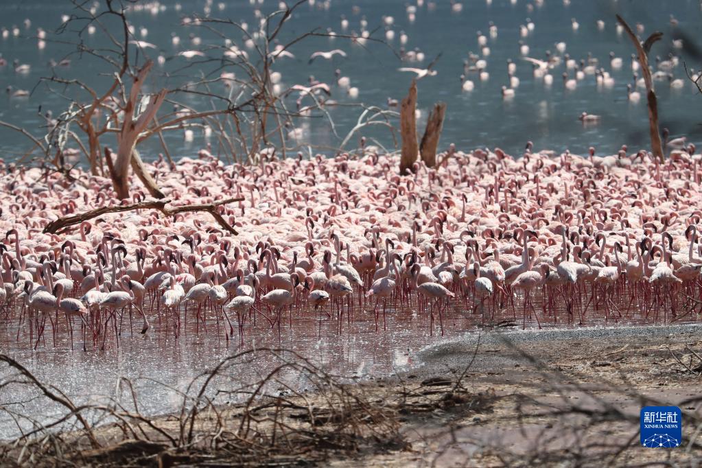 這是11月6日在肯尼亞博戈里亞湖拍攝的火烈鳥。